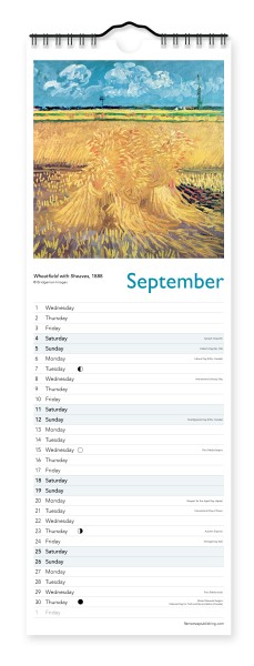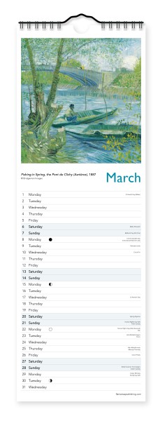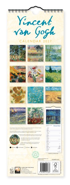 Vincent van Gogh was inspired by his family, his health, nature and colour. He believed his work was unimportant and yet since his death he has been considered masterful all over the world. This stunning calendar includes his great works Sunflowers, Irises and Wheatfield with Crows. The datepad features previous and next month’s views. Printed on FSC-certified paper, with plastic-free packaging.