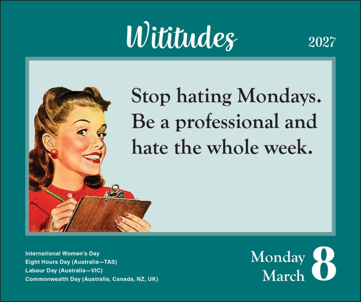 Each page showcases a humorous, sometimes swear-y, quip on everyday topics ranging from irksome job responsibilities, pesky family members, money woes, dieting, relationships, and more. It also lightheartedly pays homage to the naps, cocktails, and friendships that keep you relatively stable despite all of life's never-ending challenges.
