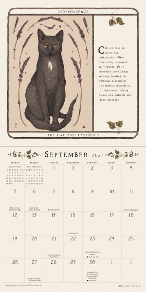 Showcasing twelve gorgeously illustrated animal-plant pairs along with their symbolic significance as divined from folklore, mythology, and literature, the 2027 mini wall calendar features animals such as the cat and fox with plants such as lavender and ivy.