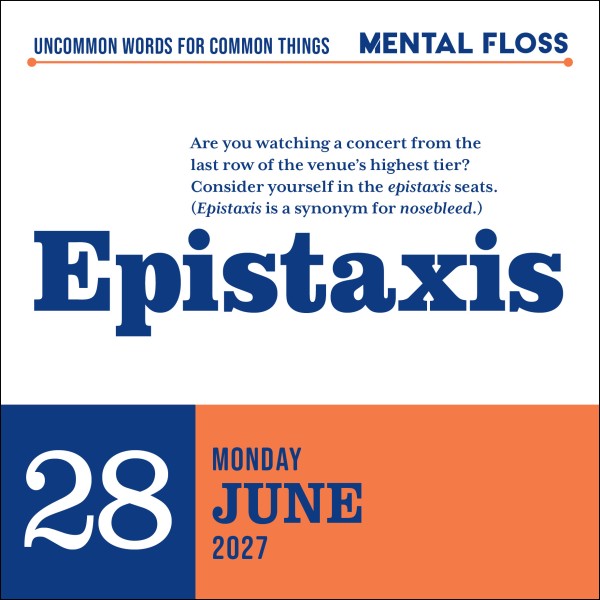 Much more than a word per day, Mental Floss’s Word Nerd 2027 Day-to-Day Calendar demonstrates, illuminates, and illustrates how weird, unlikely, and uncanny the history and origins of our language truly are. Whether a reader, writer, teacher, or talker, every word lover will find something new (and old) to say about this.